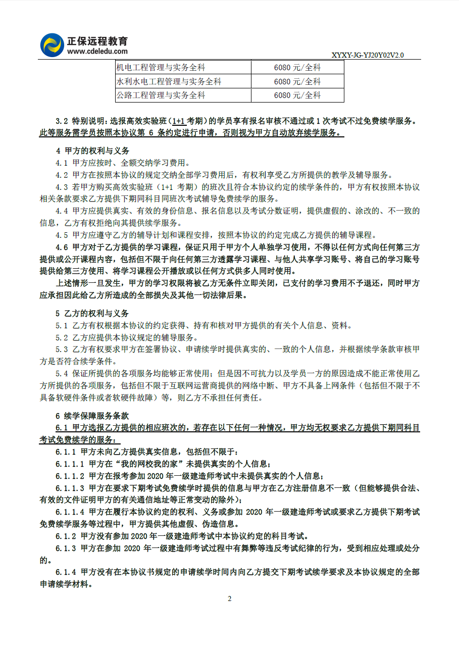 2020年一級(jí)建造師高效實(shí)驗(yàn)班續(xù)學(xué)協(xié)議書