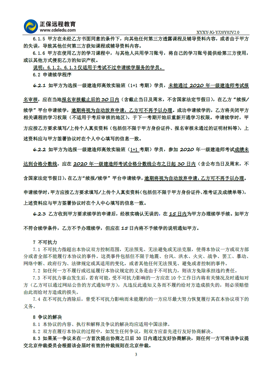 2020年一級(jí)建造師高效實(shí)驗(yàn)班續(xù)學(xué)協(xié)議書(shū)
