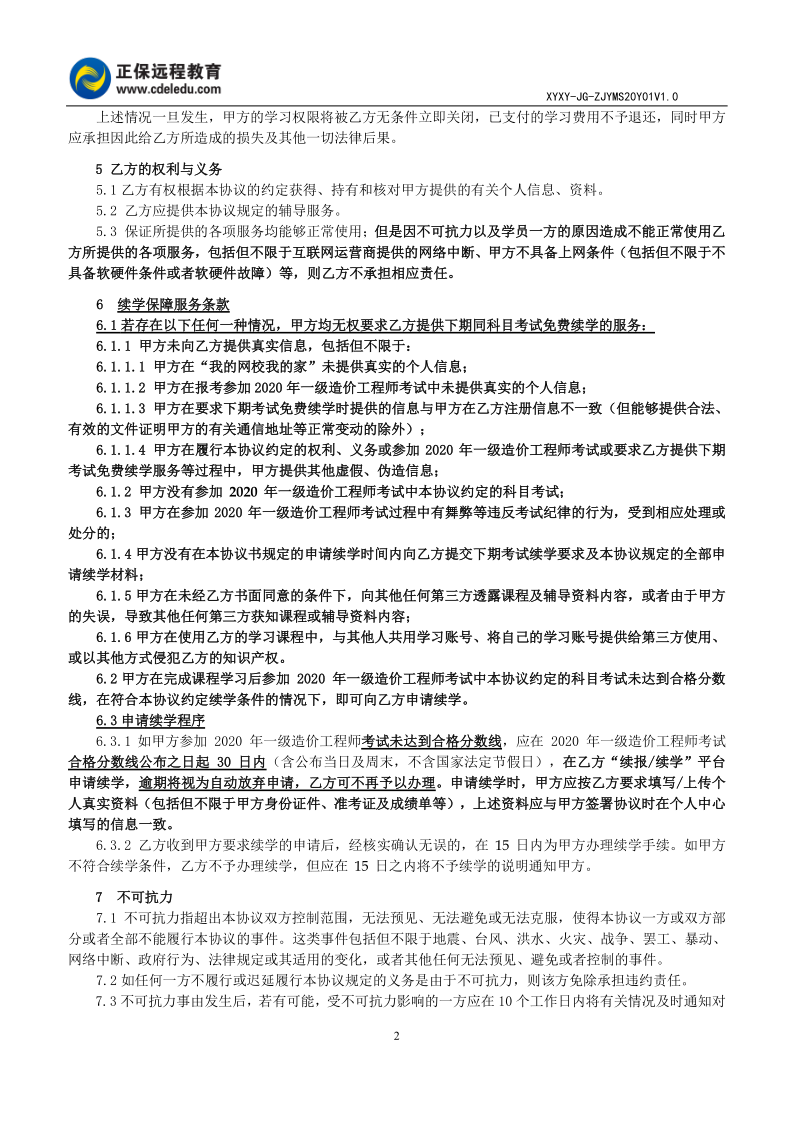 2020年一級造價工程師云面授特訓(xùn)營協(xié)議書