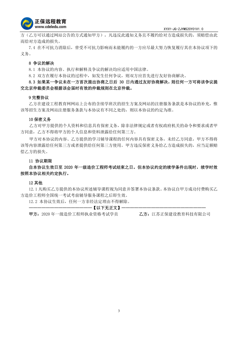 2020年一級(jí)造價(jià)工程師云面授特訓(xùn)營協(xié)議書