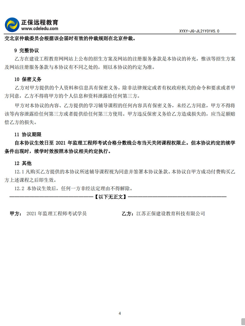 2021年監(jiān)理工程師協(xié)議書
