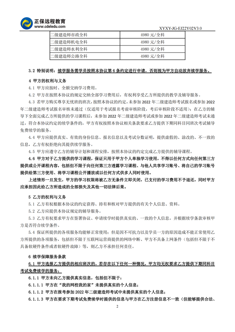 2022年二級(jí)建造師尊享無(wú)憂班協(xié)議書(shū)