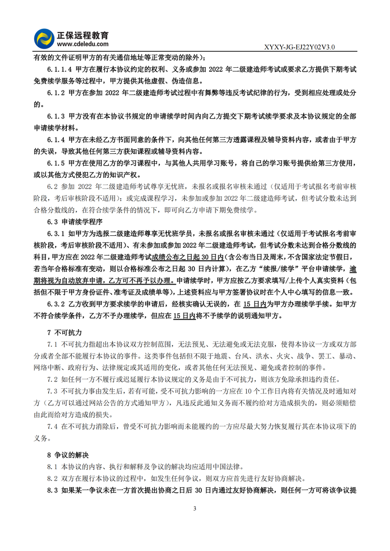 2022年二級建造師尊享無憂班協(xié)議書