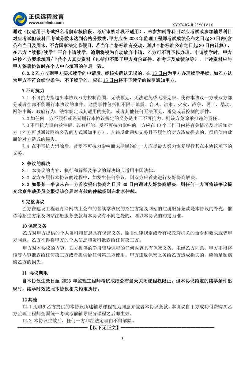 2023年監(jiān)理工程師協(xié)議書