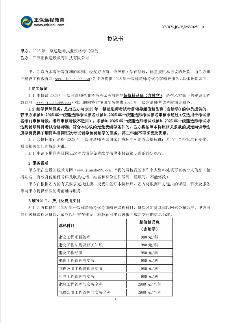 2025年一級(jí)建造師超值精品班續(xù)學(xué)協(xié)議書(shū)
