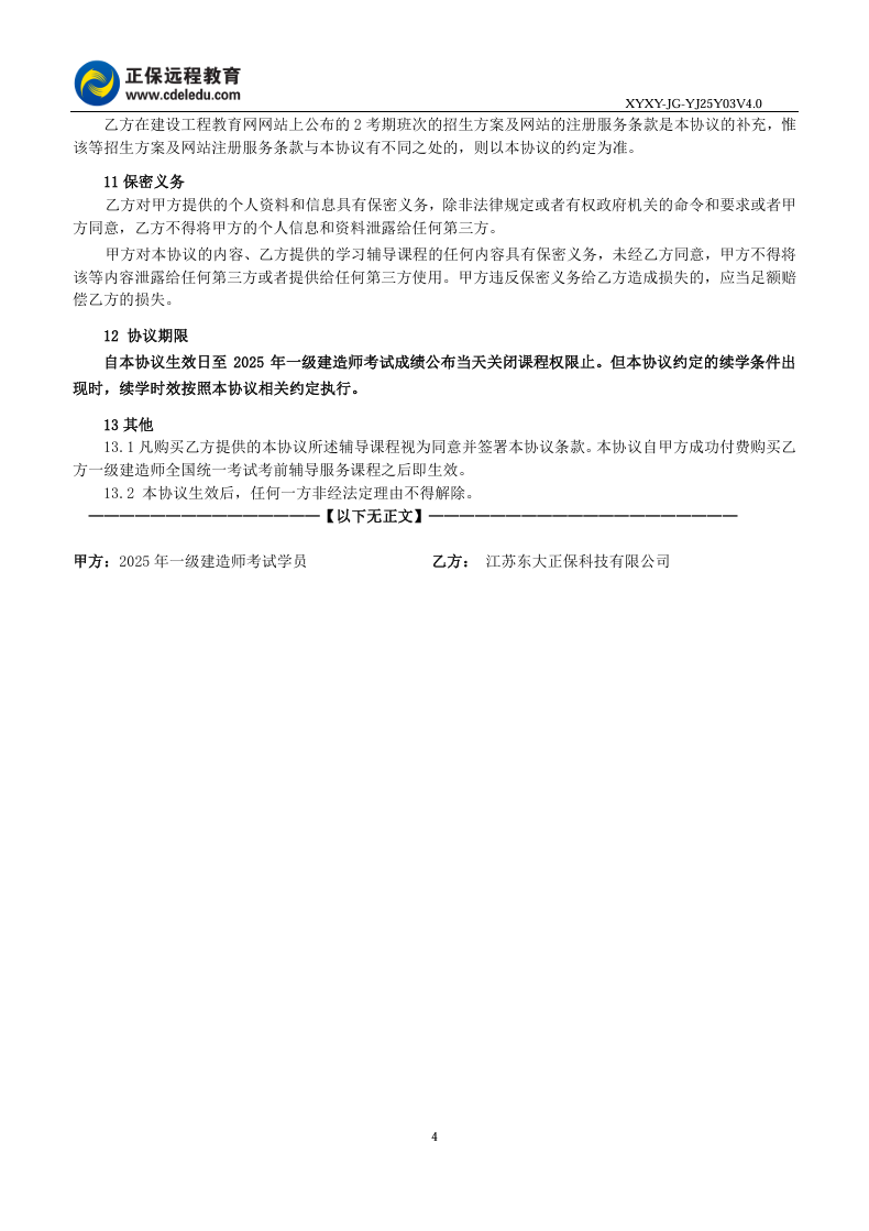 2025年一級(jí)建造師尊享無憂班協(xié)議書