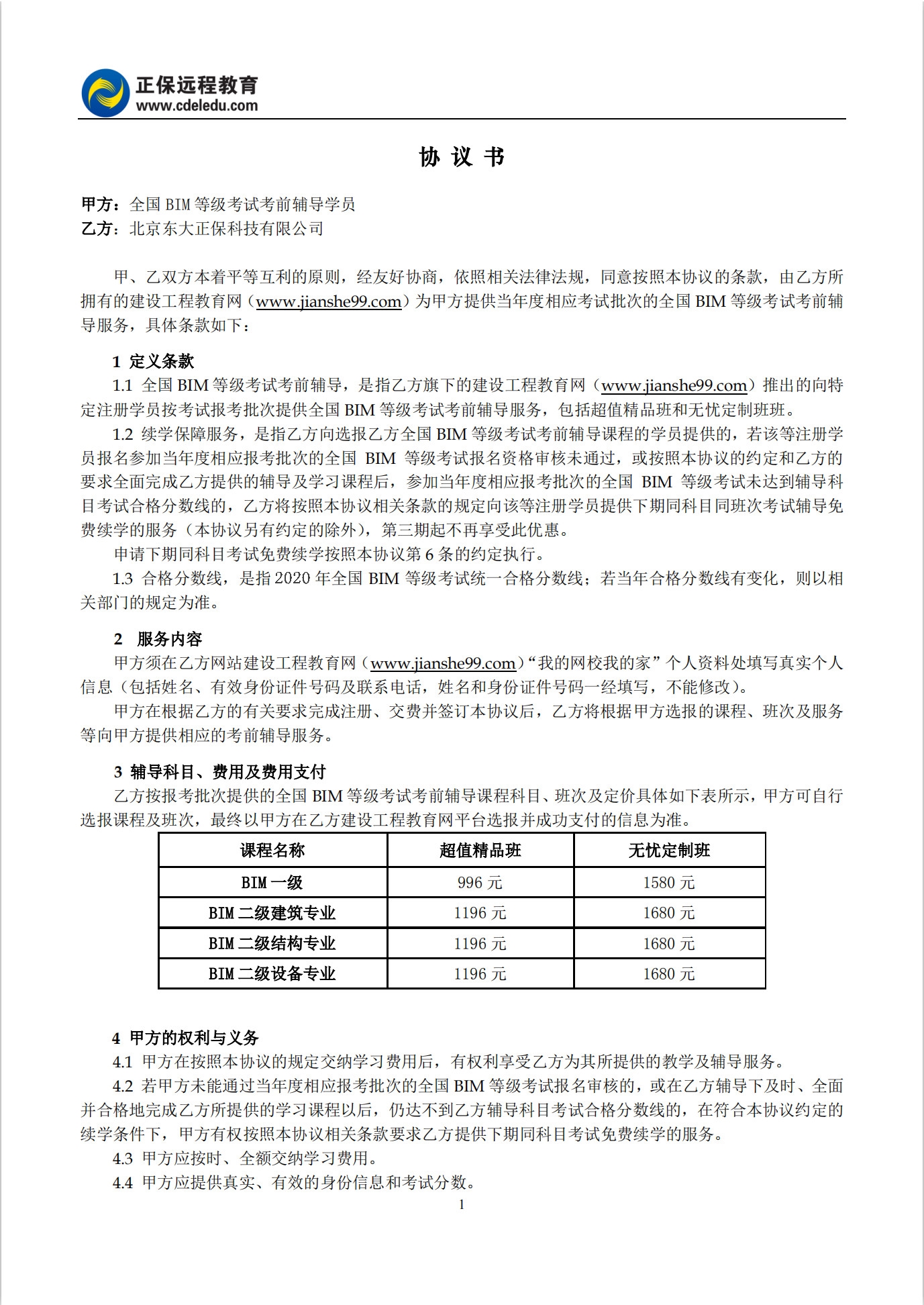 BIM等級考試協(xié)議書
