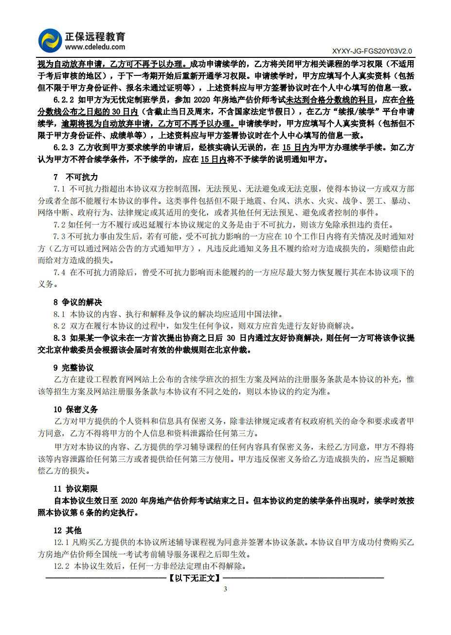 2020年房地產(chǎn)估價(jià)師無憂定制班協(xié)議書