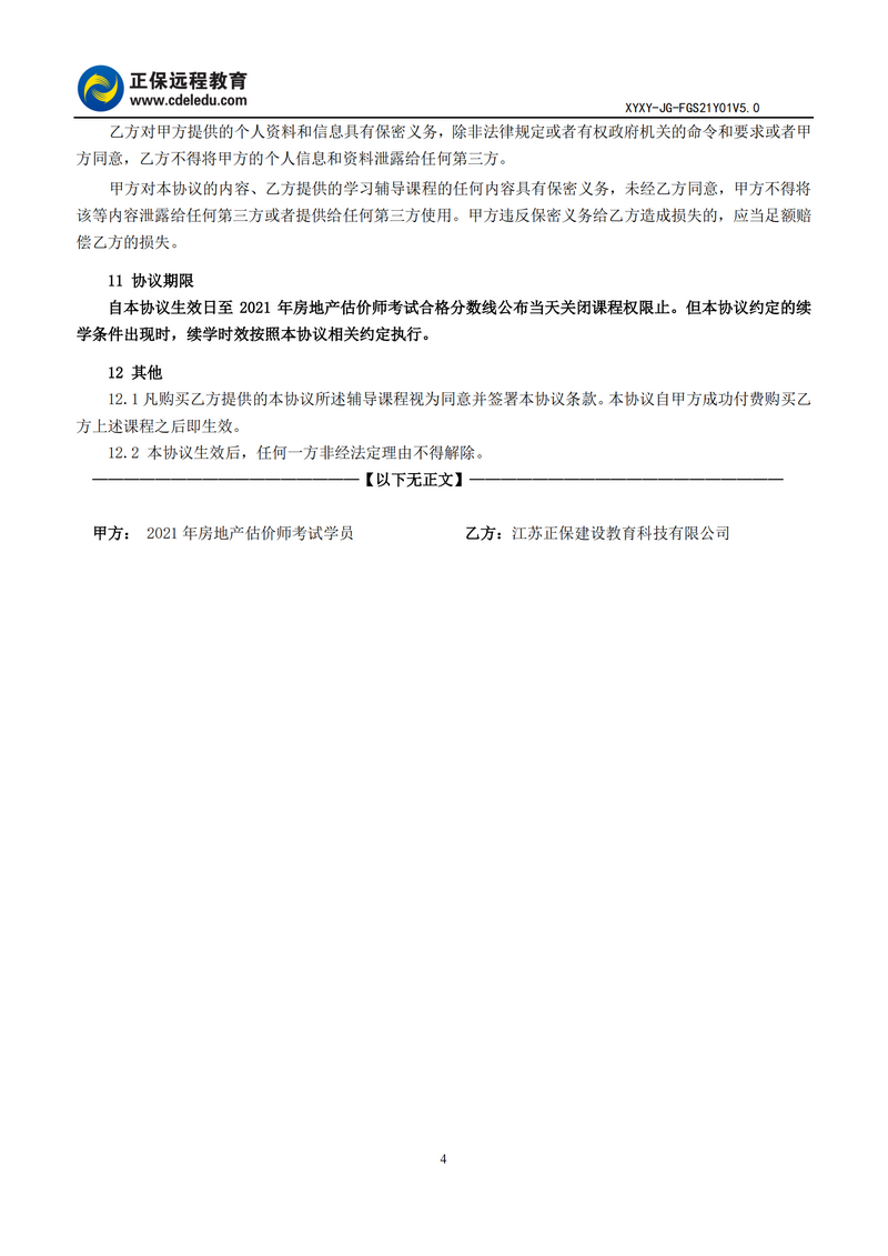 2021年房地產(chǎn)估價(jià)師高效實(shí)驗(yàn)班協(xié)議書