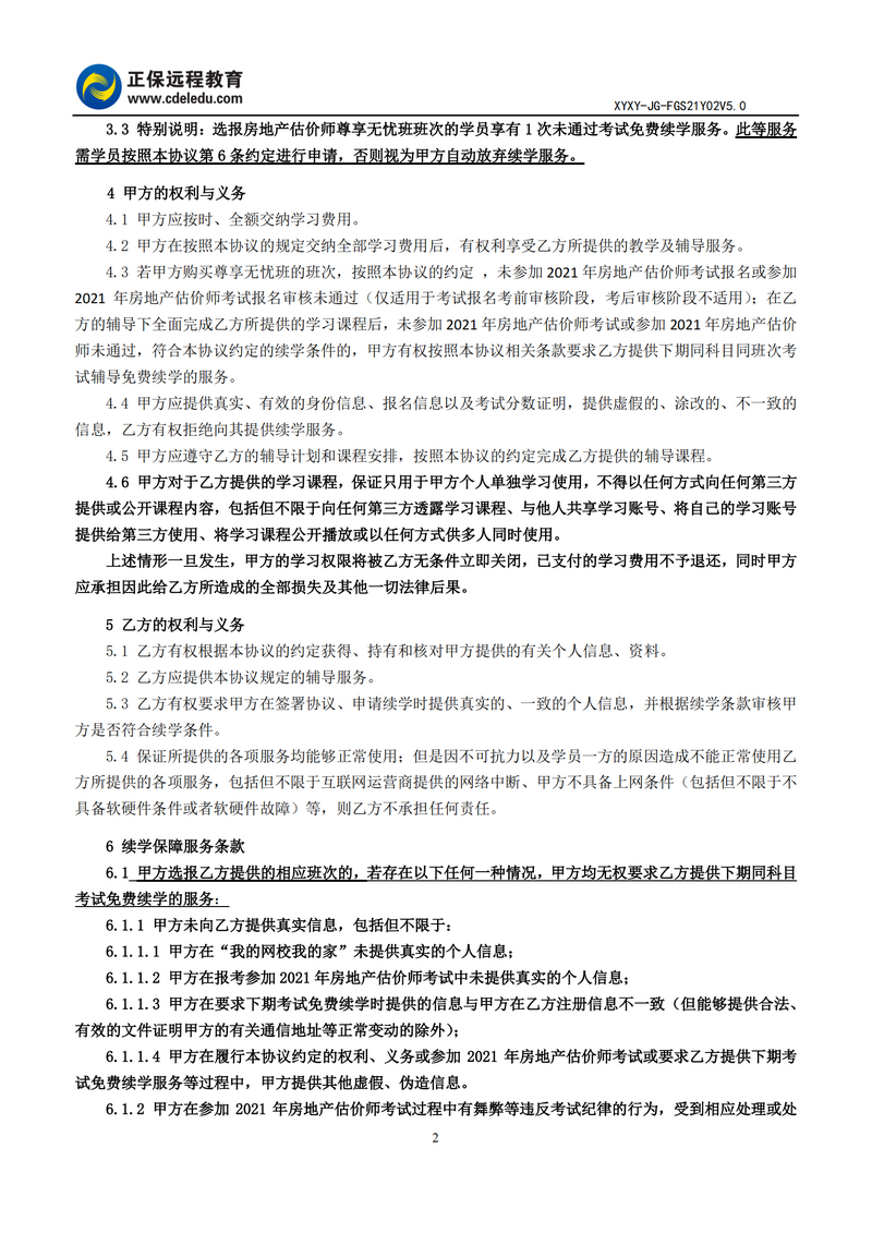 2021年房地產(chǎn)估價師尊享無憂班協(xié)議書