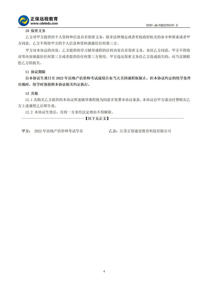 2022年房地產(chǎn)估價(jià)師高效實(shí)驗(yàn)班協(xié)議書