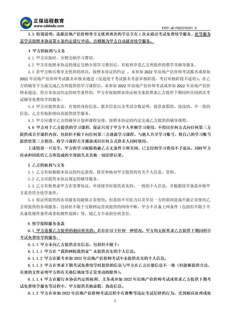 2022年房地產(chǎn)估價(jià)師尊享無憂班協(xié)議書