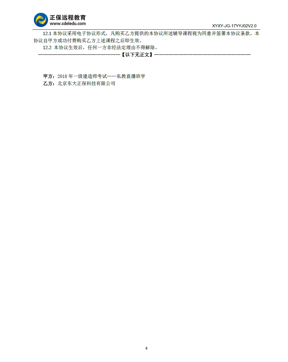 一級建造師私教直播班協(xié)議書