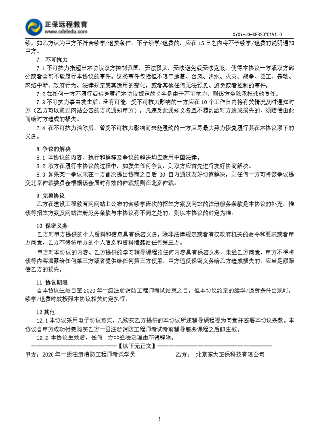 2020年一級注冊消防工程師協(xié)議書
