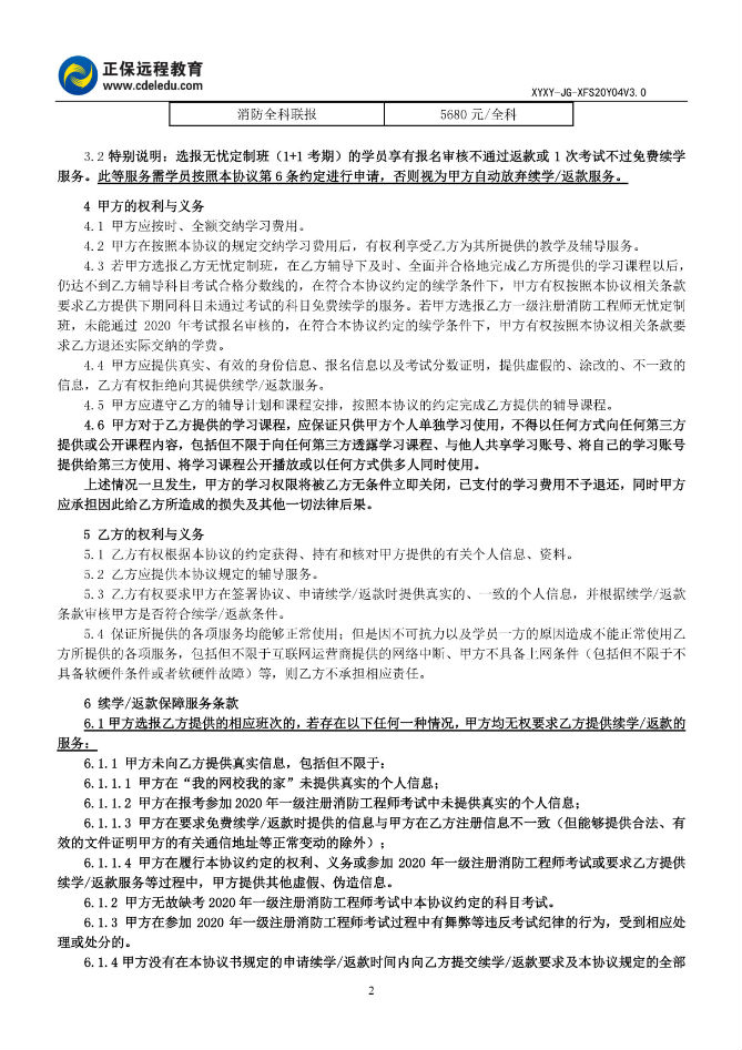 2020年一級(jí)注冊(cè)消防工程師協(xié)議書(shū)