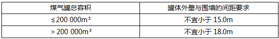 煤氣罐區(qū)四周均須設(shè)置圍墻,實(shí)地測(cè)量罐體外壁與圍墻的間距。
