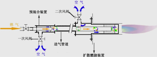 可燃?xì)怏w的燃燒不需像固體、液體那樣經(jīng)熔化、蒸發(fā)過(guò)程,其所需熱量?jī)H用于氧化或分解,或?qū)怏w加熱到燃點(diǎn),因此容易燃燒且燃燒速度快。根據(jù)燃燒前可燃?xì)怏w與氧混合狀況不同,其燃燒方式分為擴(kuò)散燃燒和預(yù)混燃燒。