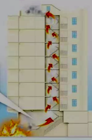 若火風壓等于或小于進風口的壓力,則煙火便全部從內部蔓延,當它進入樓梯間、電梯井、管道井、電纜井等豎向孔道以后,會大大加強煙囪效應。
