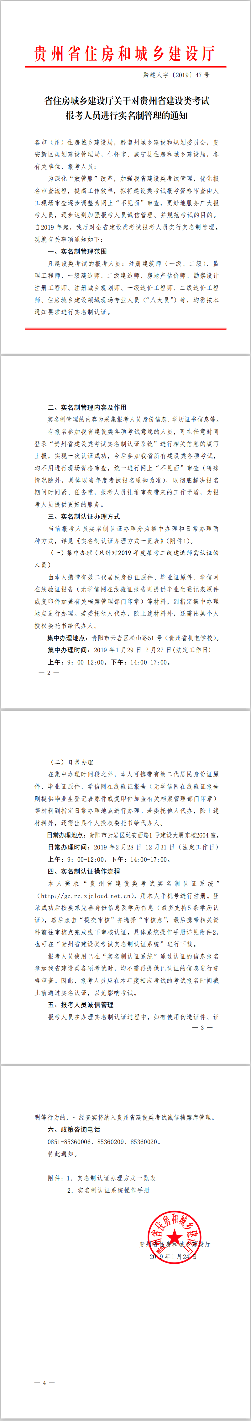 根據(jù)《省住房城鄉(xiāng)建設(shè)廳關(guān)于對(duì)貴州省建設(shè)類考試報(bào)考人員進(jìn)行實(shí)名制管理的通知》(黔建人字〔2019〕47 號(hào))(詳見(jiàn)附件1), 現(xiàn)針對(duì)全省建設(shè)類考試報(bào)考人員開(kāi)展實(shí)名制管理工作以來(lái)出現(xiàn)的 問(wèn)題,補(bǔ)充通知如下:
