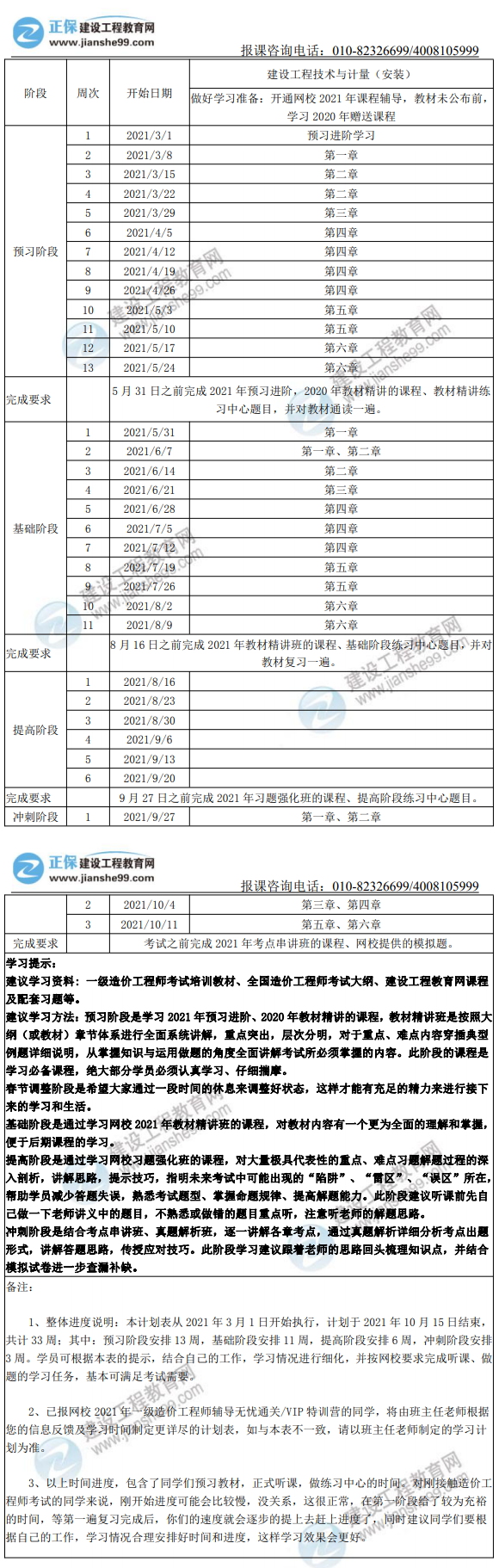 2021年一級(jí)造價(jià)師安裝計(jì)量全年學(xué)習(xí)計(jì)劃
