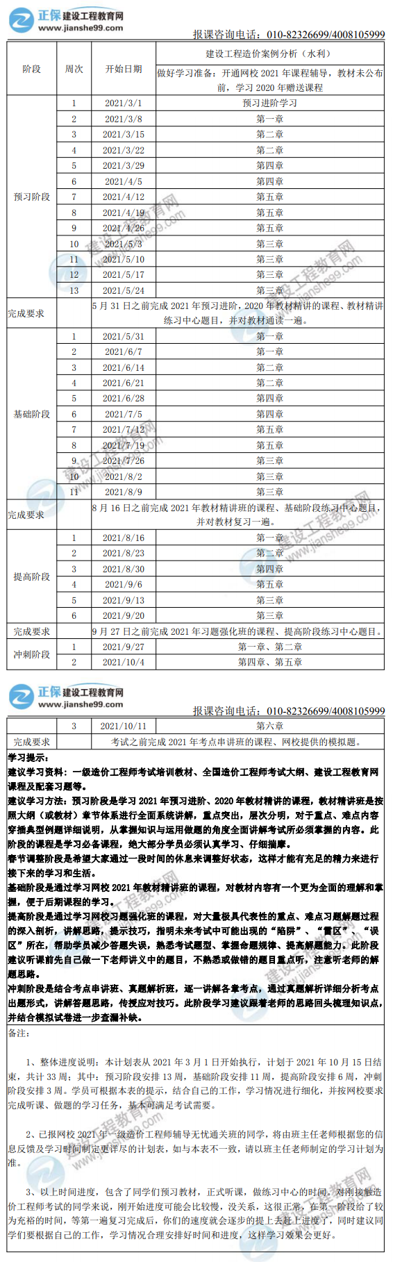 2021年一級造價師水利案例全年學習計劃