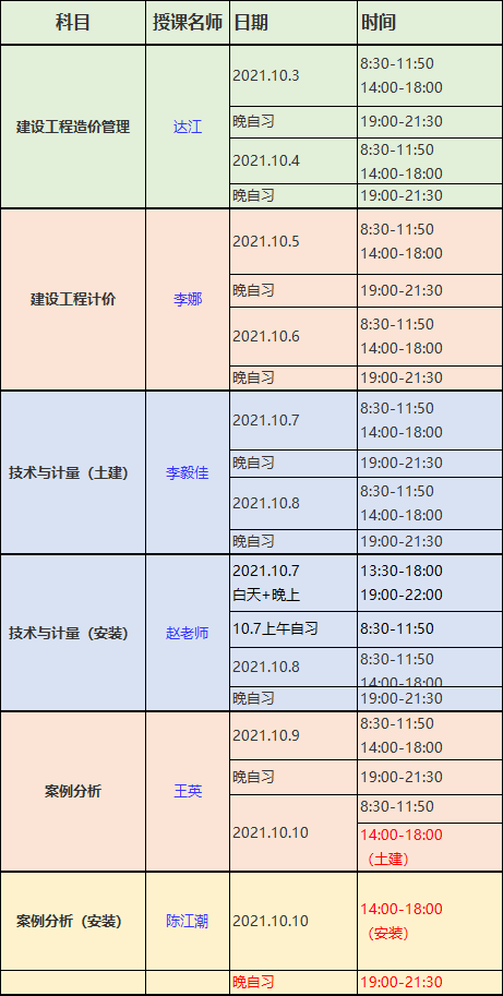 下面小編附上這幾天的面授安排,注意上課時間哦~
