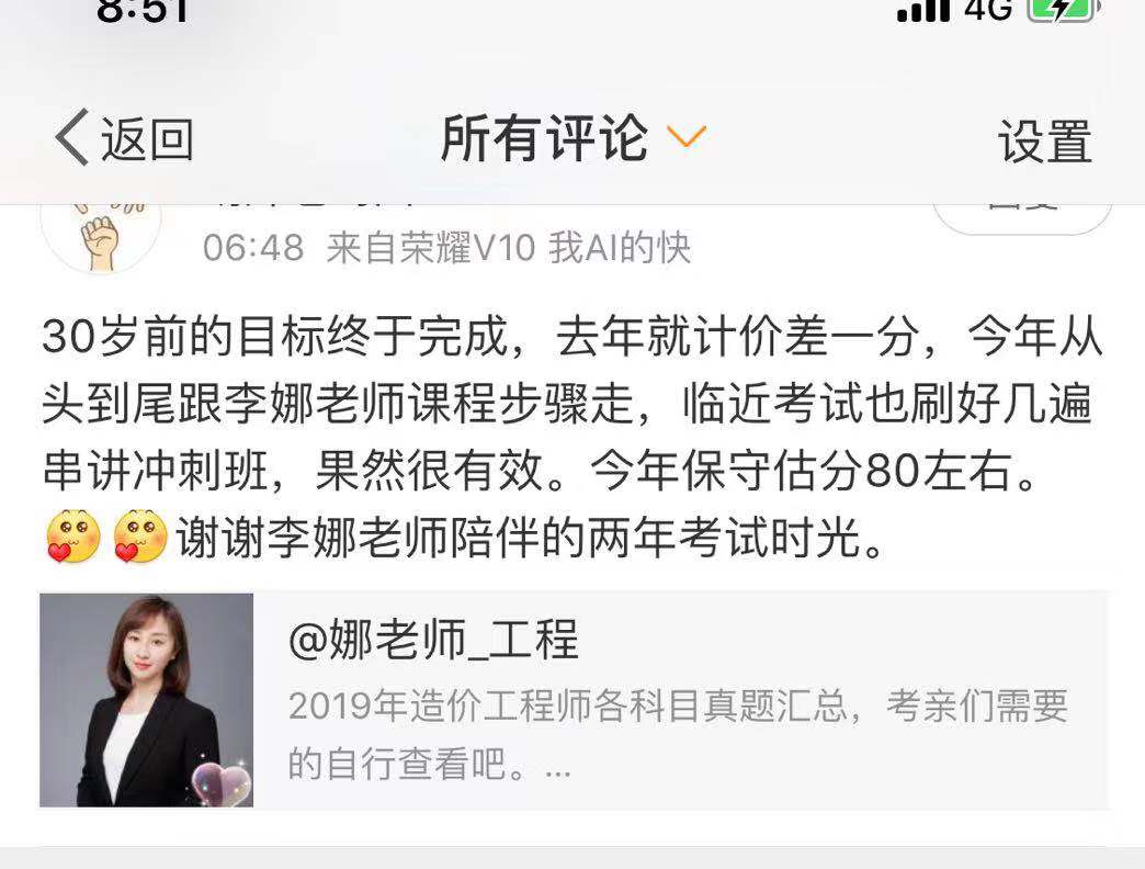 看到學(xué)員們都在工程計價上取得了不錯的成績,網(wǎng)校的老師和小編們也是非常開心!2020年我們將繼續(xù)提供更加優(yōu)質(zhì)的課程和服務(wù),愿一級造價工程師考試對于我們的學(xué)員們來說,永遠(yuǎn)不難!2020年的工程計價學(xué)員們,跟著我們的美娜老師,沖鴨!