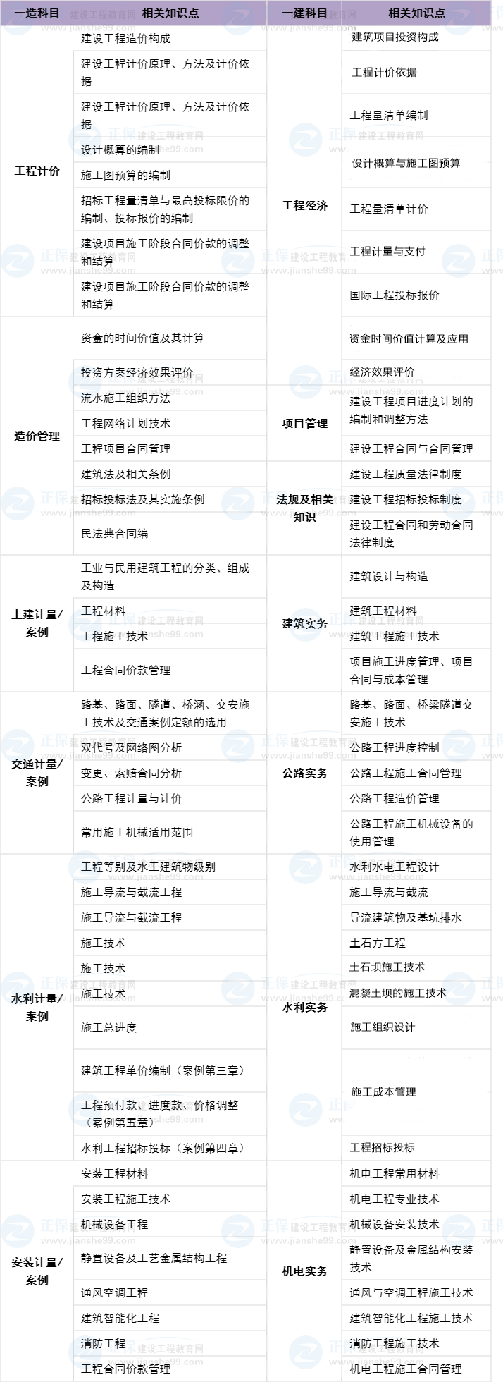 那么一建與一造到底有多少互通的地方?跟小編看下面這張表!