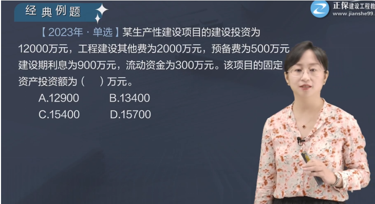 1.某建設期為2年的工程項目建設投資為10000萬元,工程建設其他費為1500萬元,預備費為450萬元,建設期初貸款4000萬元,貸款年利率為4%;流動資金為200萬元。該項目的固定資產(chǎn)投資額為()萬元。