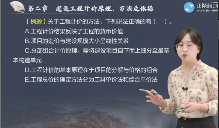 A.工程計價的基本原理是單價的確定和總價的匯總