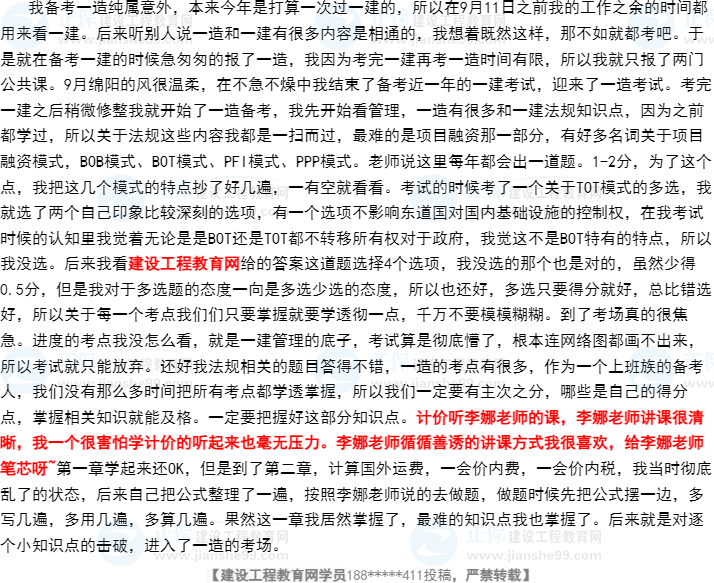 2021年一級造價師考試已經(jīng)結(jié)束,建設(shè)工程教育網(wǎng)在這個考試結(jié)束之際,推出了“我的造價備考之路”有獎?wù)魑幕顒?!你投稿我發(fā)獎,在這個考完的放松時刻,讓你說出你的備考心得,分享你的備考醫(yī)路,在此小編為大家整理參與活動的投稿內(nèi)容,一起分享大家的備考感悟與心得: