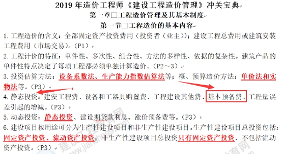 建設(shè)工程教育網(wǎng)針對現(xiàn)有試題分析,發(fā)現(xiàn)2019年《建設(shè)工程造價(jià)管理》試題難度一般,僅有個(gè)別題目比較偏門,但所占分值比重不會對考過造成影響。絕大多數(shù)考點(diǎn)在老師課程中、習(xí)題練習(xí)、模擬題、預(yù)測卷、考前資料、臨考直播密訓(xùn)中都有涉及,覆蓋率達(dá)到了90%,而考前資料(沖關(guān)寶典26頁)覆蓋率達(dá)到了70%。多選題相對來講比較簡單,3-4個(gè)答案的題目比較多,基本上都能拿到分值,錯(cuò)選的概率降低了,大大提高了得分率。沖關(guān)寶典做為考前資料,頁數(shù)比較少,但是內(nèi)容覆蓋還是很強(qiáng)大的,基本上融匯了絕大部分考試考點(diǎn),可以隨身攜帶,隨身翻閱。下面我們用事實(shí)來見證奇跡: