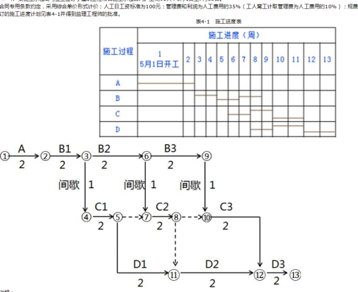 預(yù)測(cè)試題(一):網(wǎng)絡(luò)圖與橫道圖的結(jié)合題
