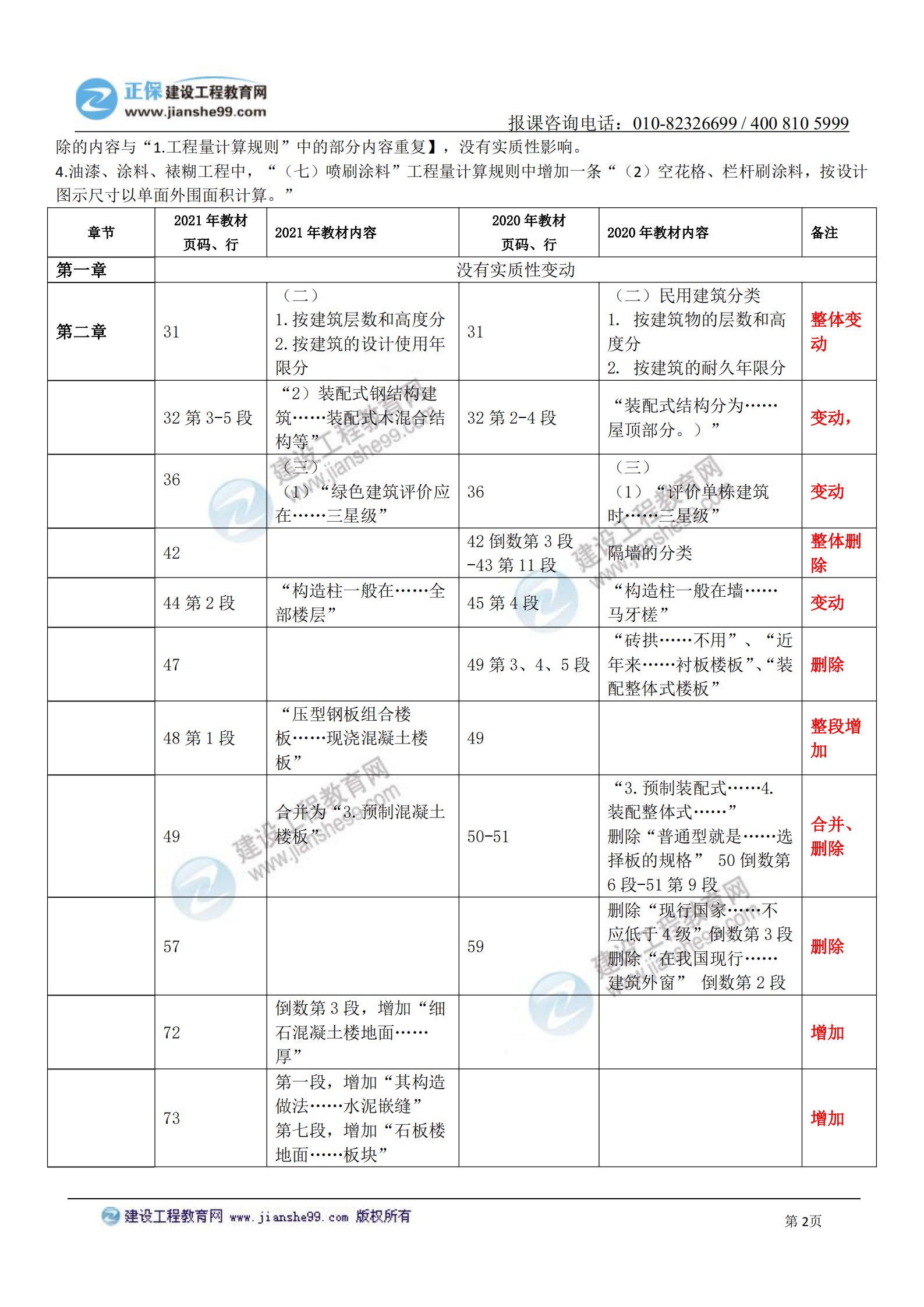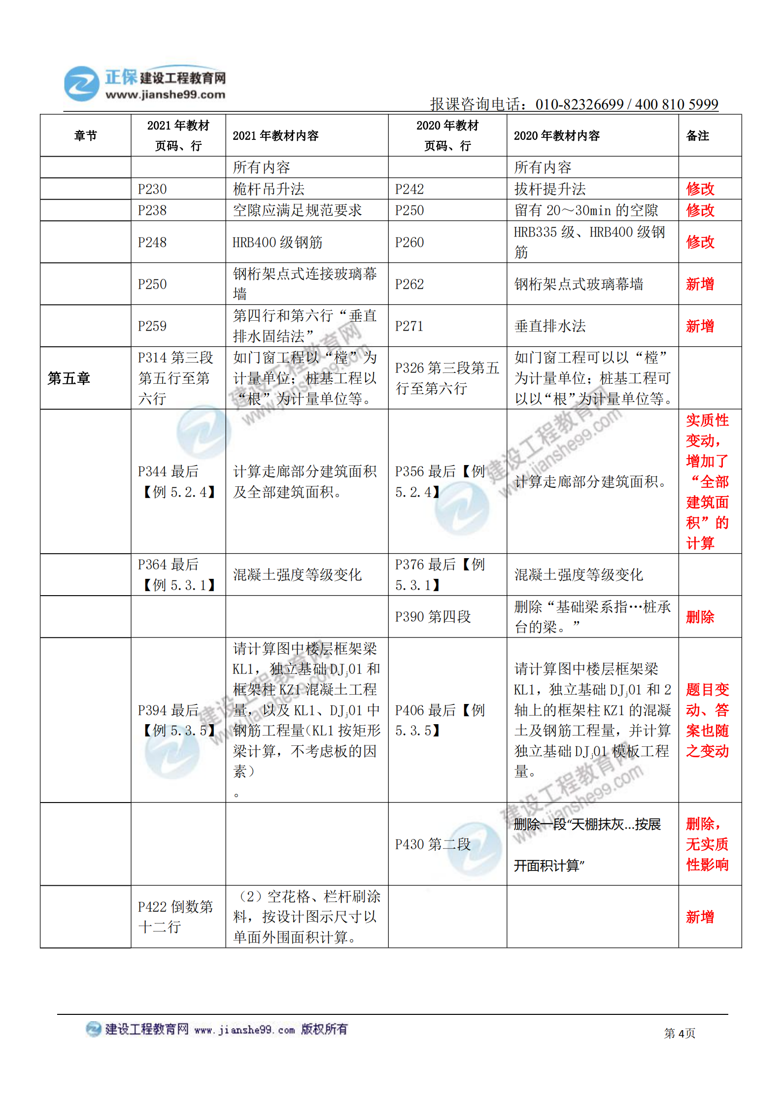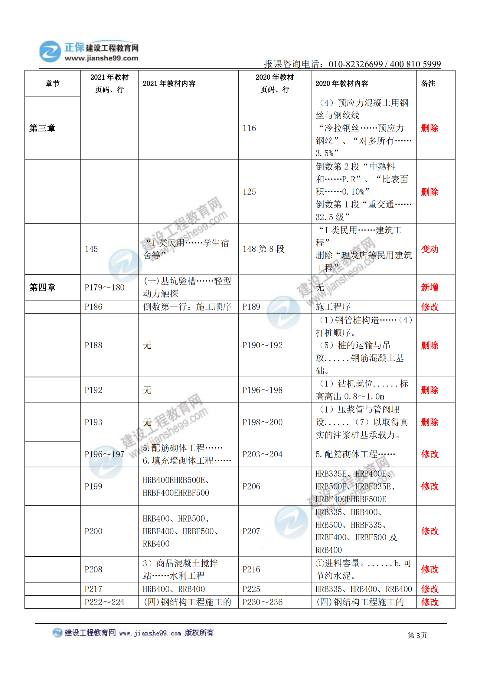 2021年一級造價(jià)師《建設(shè)工程技術(shù)與計(jì)量(土建)》教材變化對比