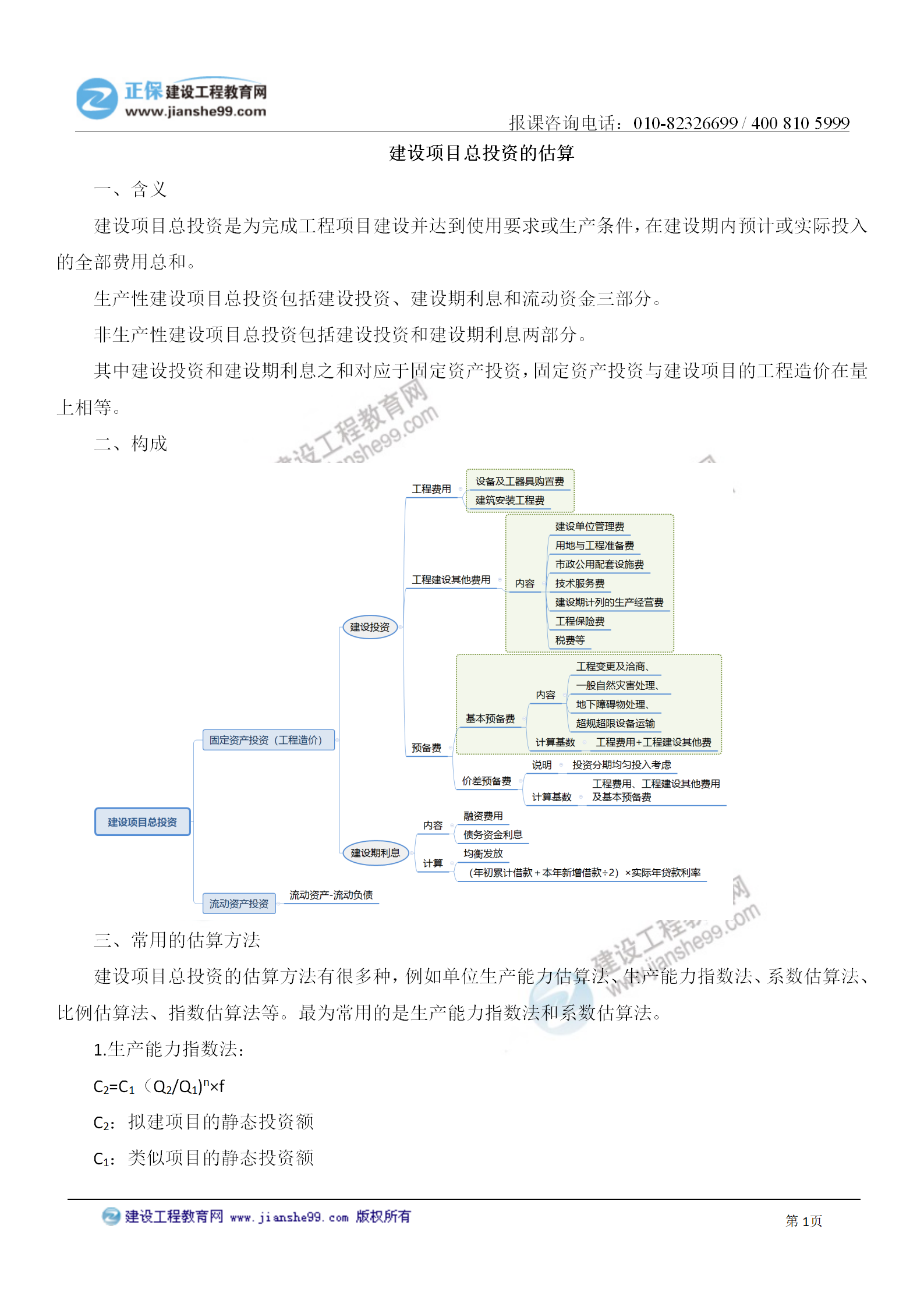 2021年一級造價工程師知識點復(fù)習(xí):建設(shè)項目總投資的估算