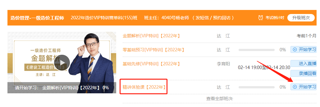 一級(jí)造價(jià)師精講體驗(yàn)課聽課入口