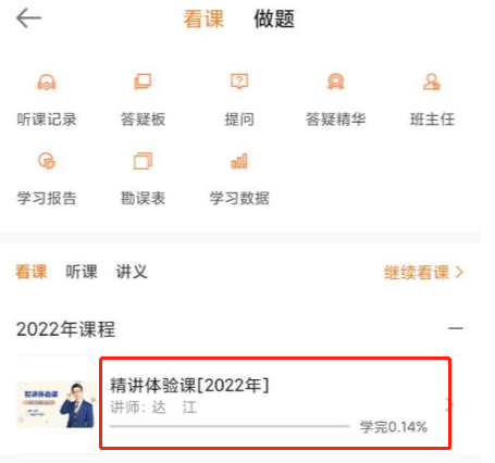 3、點(diǎn)擊科目,選擇“精講體驗(yàn)課”課程,直接進(jìn)入聽課即可。