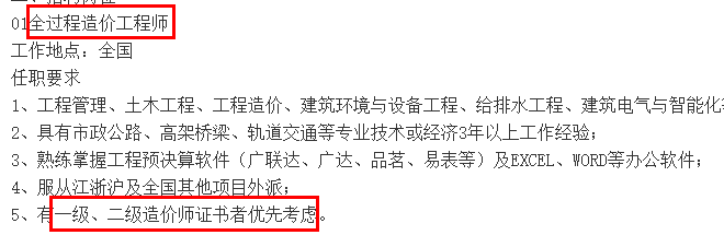 注意!招聘時有一級造價工程師資格的會被優(yōu)先考慮