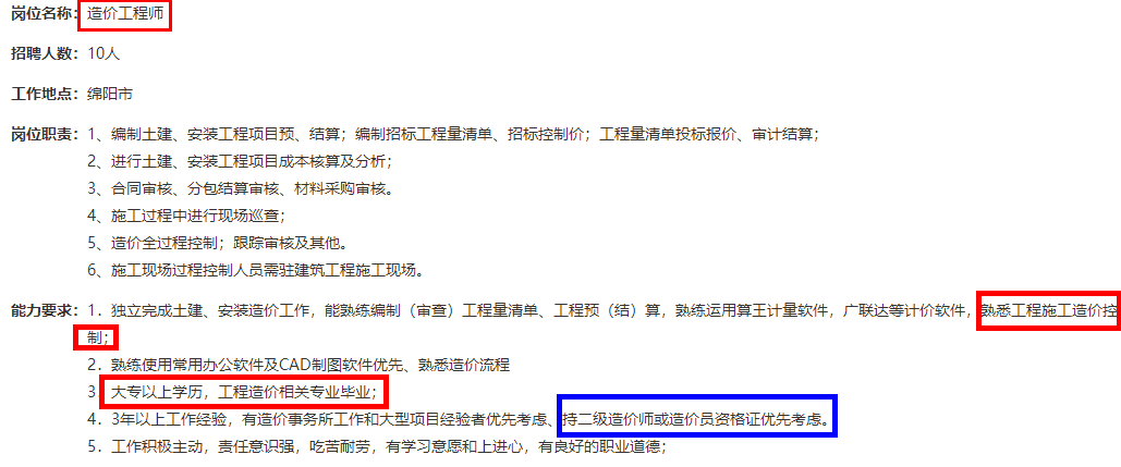 一下是一些企業(yè)的招聘信息,我們一起來(lái)看看二級(jí)造價(jià)師的福利待遇到底如何吧!