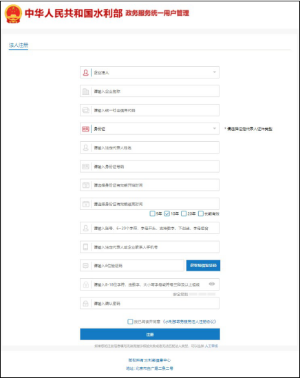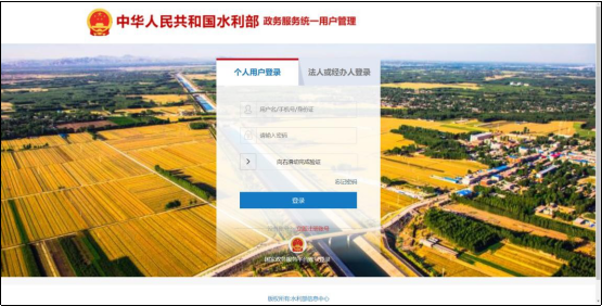 進入水利部政務服務統(tǒng)一用戶管理頁面,如果已有賬號可直接登錄賬號,沒有賬號的用戶需要先進行注冊,點擊“立即注冊賬號”。