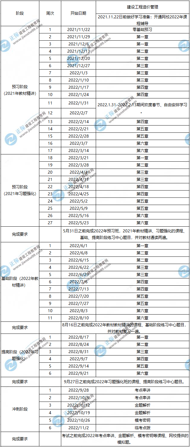 2022一級(jí)造價(jià)工程師造價(jià)管理預(yù)習(xí)計(jì)劃