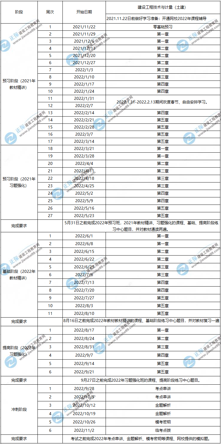 2022年一級造價工程師考試時間為11月12、13日,現(xiàn)階段如何學?來看看網(wǎng)校制定了2022年一級造價工程師考試預習計劃表,以方便同學們對一造學習進度全面把握。