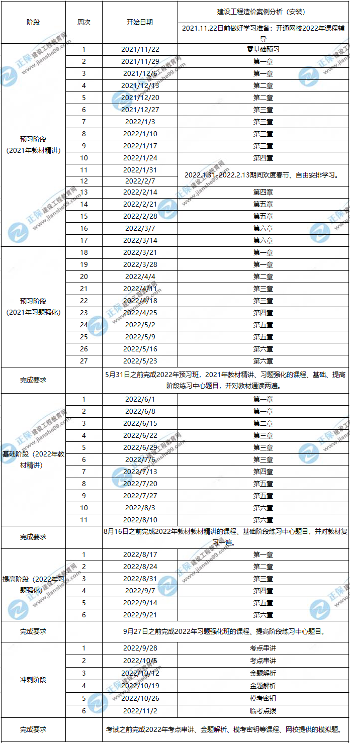 如何學2022一級造價工程師安裝案例?來看看網(wǎng)校制定了2022年一級造價工程師考試預習計劃表,以方便同學們對一造學習進度全面把握。