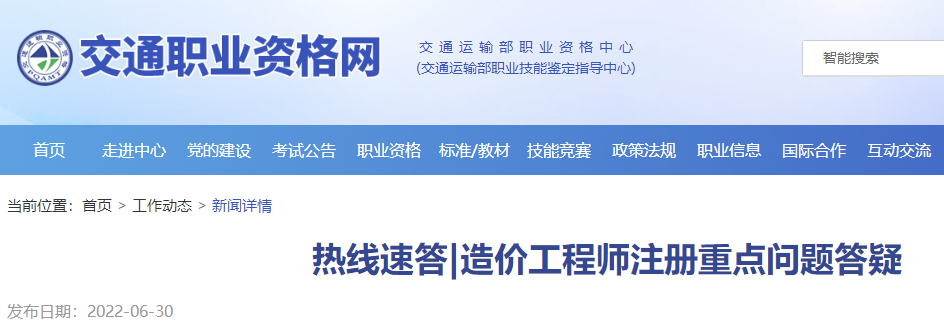 答:您好!根據(jù)《造價(jià)工程師職業(yè)資格制度規(guī)定》(建人〔2018〕67號(hào)),各省、自治區(qū)、直轄市交通運(yùn)輸行政主管部門(mén)負(fù)責(zé)交通運(yùn)輸工程二級(jí)造價(jià)工程師注冊(cè)及相關(guān)工作。關(guān)于二級(jí)造價(jià)工程師注冊(cè)事宜,可咨詢所在地省級(jí)交通運(yùn)輸主管部門(mén)或相關(guān)機(jī)構(gòu),省級(jí)公路工程造價(jià)注冊(cè)機(jī)構(gòu)聯(lián)系方式詳見(jiàn)“全國(guó)公路工程造價(jià)人員管理平臺(tái)”工作動(dòng)態(tài)置頂消息。