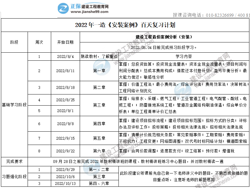 2022年一造《安裝案例》百天復(fù)習(xí)計劃