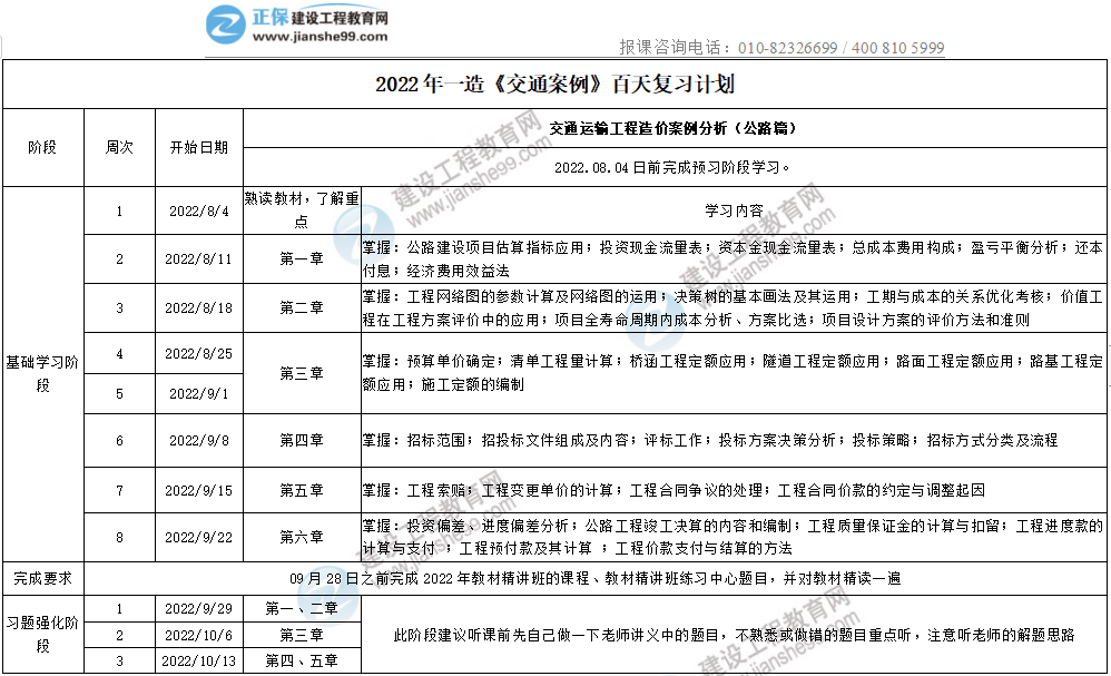 2022年一造《交通案例》百天復(fù)習(xí)計(jì)劃