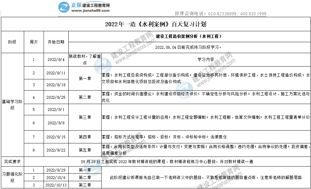 2022年一造《水利案例》百天復(fù)習(xí)計(jì)劃