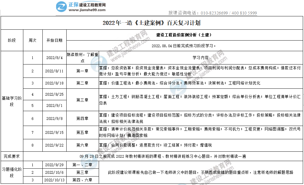 2022年一造《土建案例》百天復(fù)習(xí)計劃