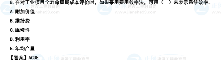 【考后點(diǎn)評(píng)】主要錯(cuò)誤原因漏選A。本題問(wèn)的是用什么來(lái)表示系統(tǒng)效率,教材中給出的有年均產(chǎn)量、利用率等等10個(gè)方面,全部記憶難度較大,需要做的是將系統(tǒng)效率和壽命周期成本分清楚,確保能選擇2~3個(gè)正確選項(xiàng)。