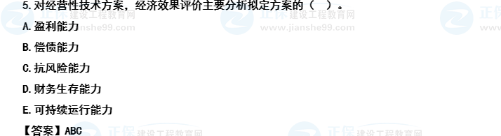 【考后點(diǎn)評(píng)】主要錯(cuò)誤選項(xiàng)D。對(duì)于技術(shù)方案評(píng)價(jià),尤其要注意是經(jīng)營(yíng)性項(xiàng)目還是非經(jīng)營(yíng)性項(xiàng)目,對(duì)于非經(jīng)營(yíng)性項(xiàng)目才需要財(cái)務(wù)生存能力分析。